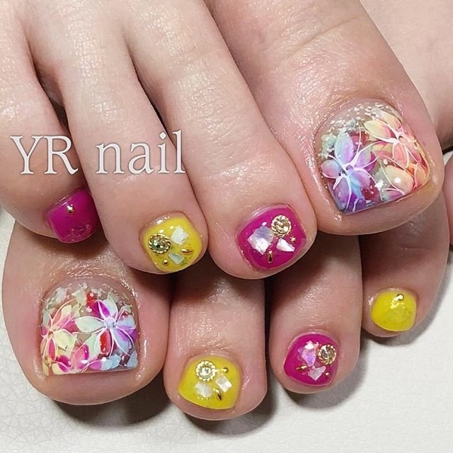 フットネイルは準備ok 花柄 タイダイ ビジュー 春におすすめのフットネイルデザイン3選 Itnail